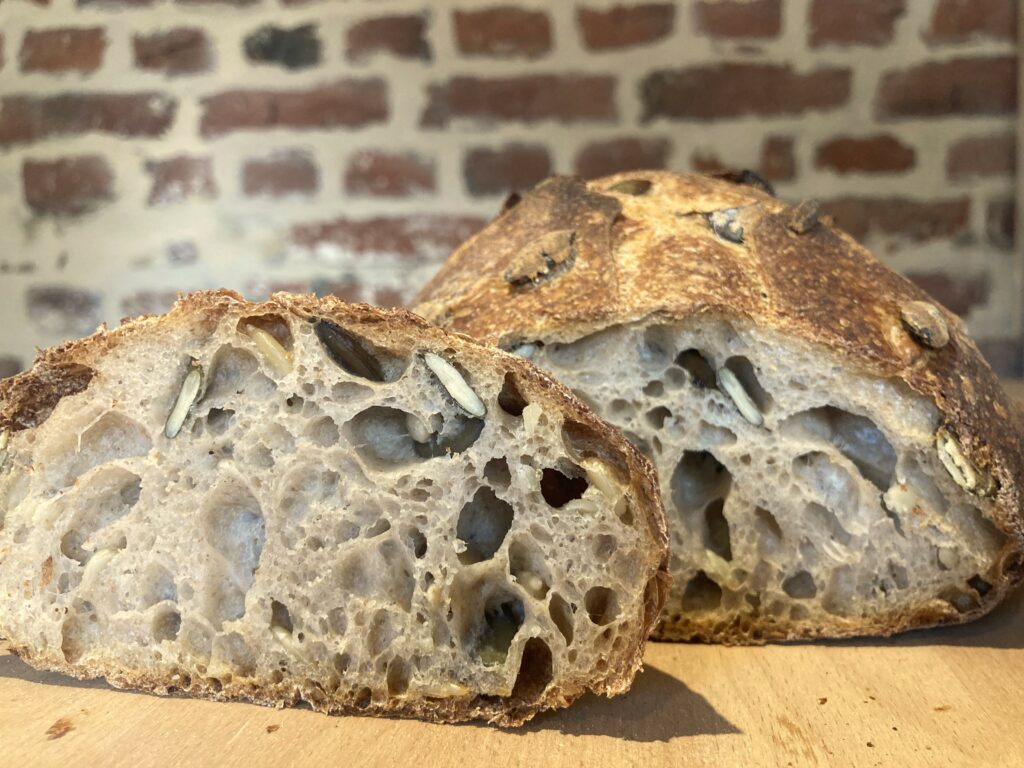 C’est donc depuis fin 2024 qu’il propose différents types de pain au levain bio et brioche, cuits au feu de bois traditionnel.
