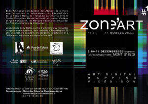 Zone’Art est une production des Ateliers de la Halle avec le soutien du département du Pas-de-Calais, de la Région Hauts-de-France en partenariat avec le Centre Pompidou Musée National, le London Collège of Communication, et Monstra Festival International du Film d’animation de Lisbonne